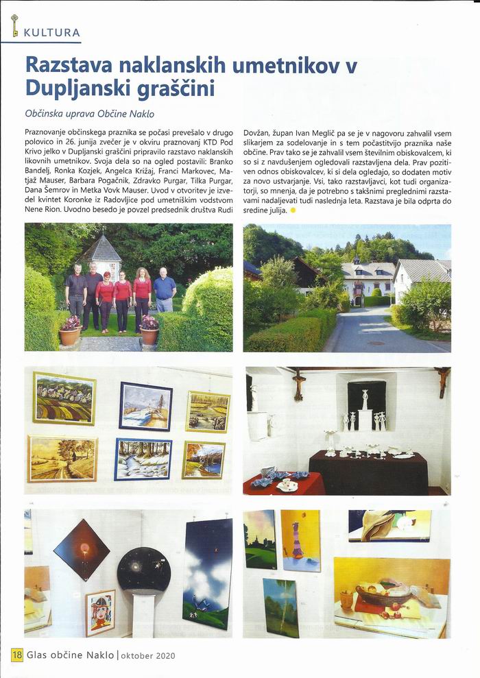 Naklo. Razstavljajo naklanski likovniki: Branko Bandelj, Ronka