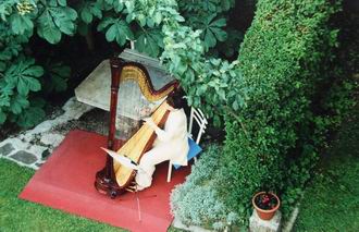Ljubljana. Svoj inštrument je postavila v grajski vrt, pod krošnjo divjega