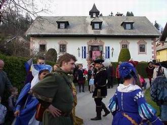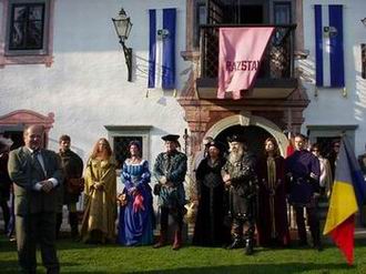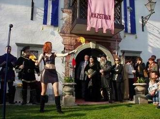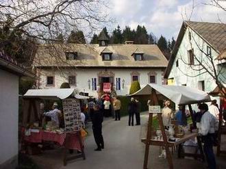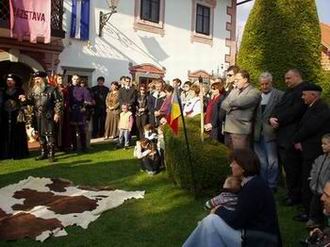 Duplje. Ob otvoritvi so bile pred graščino postavljene stojnice,
