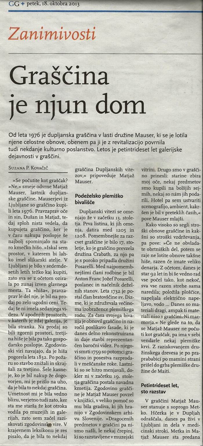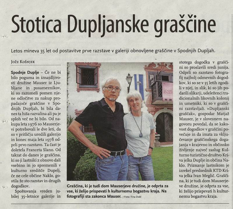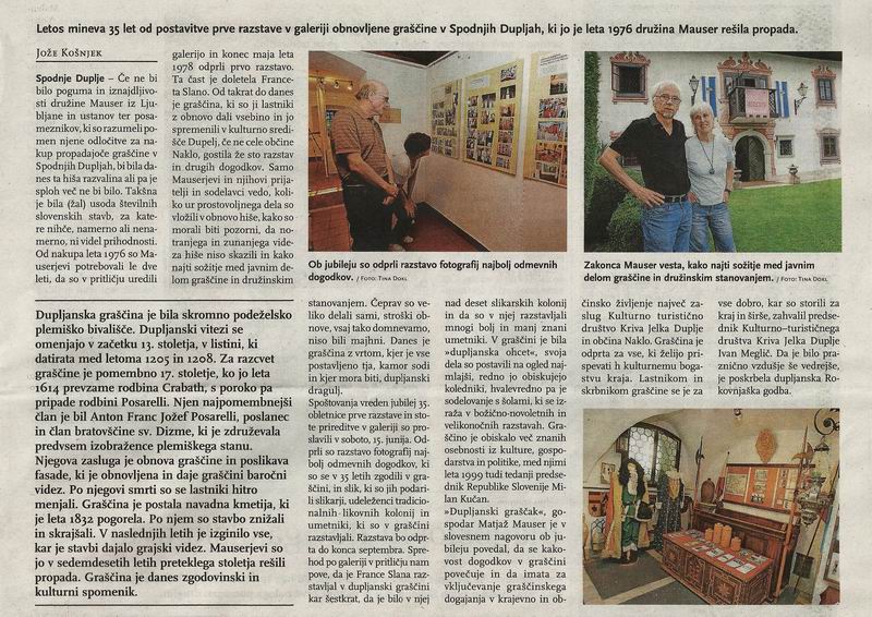 revija: MANAGER, november 2011, V prebivališču dupljanskih vitezov likovne razstave, str 109.