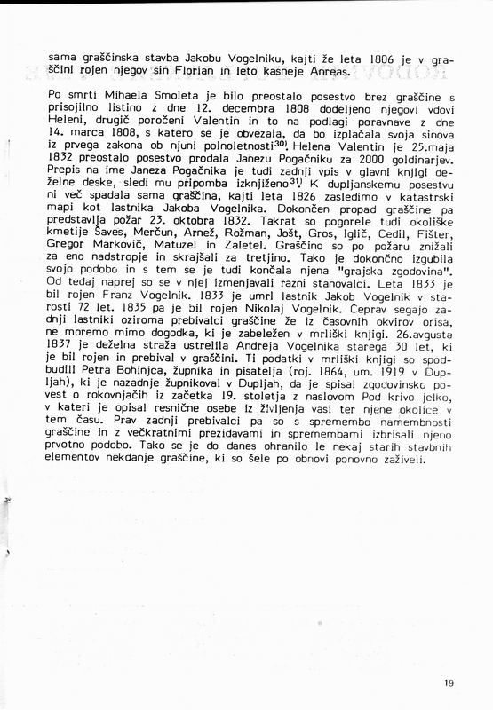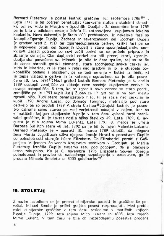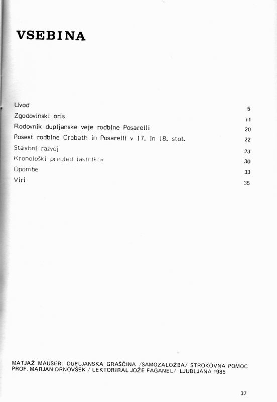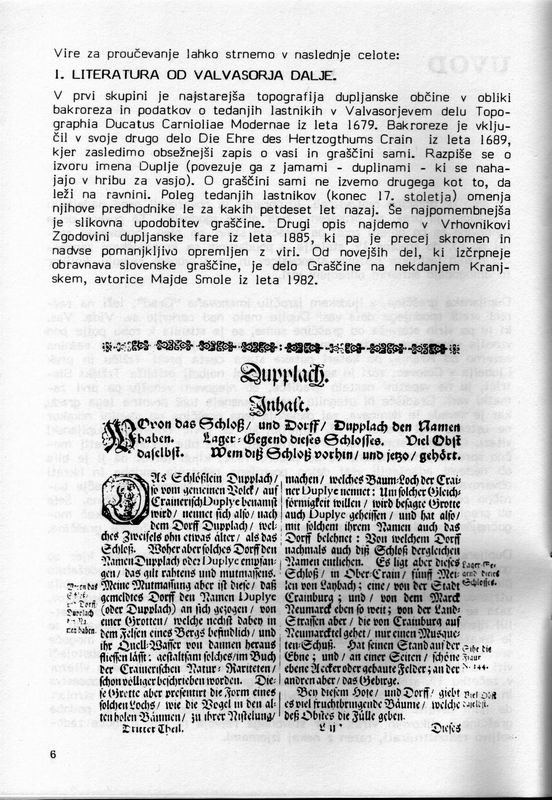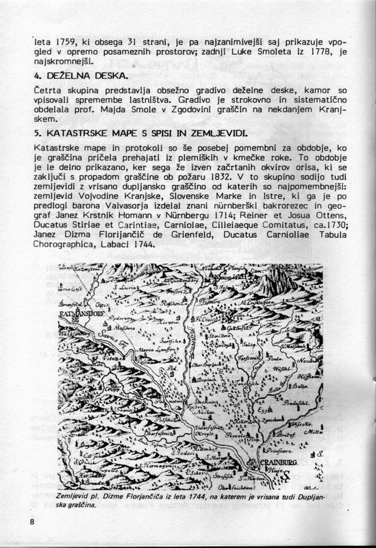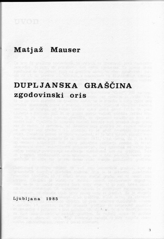 Matjaž Mauser, DUPLJANSKA GRAŠČINA - zgodovinski oris, Ljubljana 1985