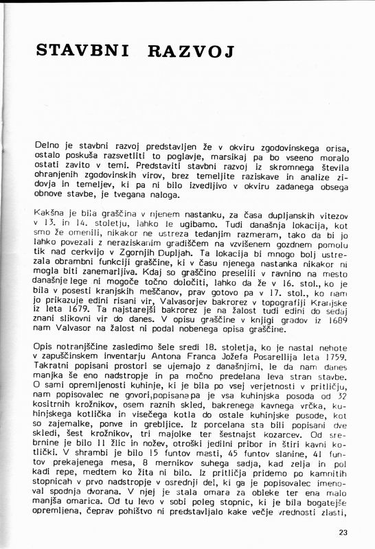 Matjaž Mauser, Dupljanska graščina - zgodovinski oris, Ljubljana 1985